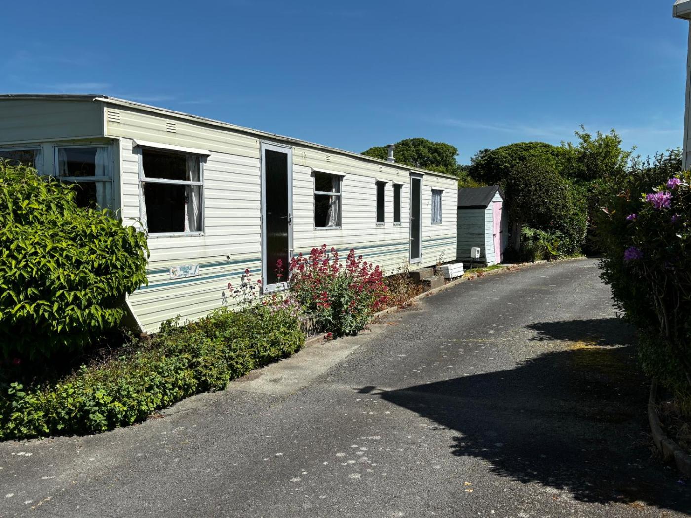 Caravan. This mobile home consists of 1 living room, 2 separate bedrooms and 1 bathroom with a shower. Guests can make meals in the kitchenette that is equipped with a stovetop, a refrigerator, kitchenware and an oven. The mobile home features carpeted floors, a seating area with a flat-screen TV, a dining area, a wardrobe as well as sea views. The unit offers 3 beds. ;