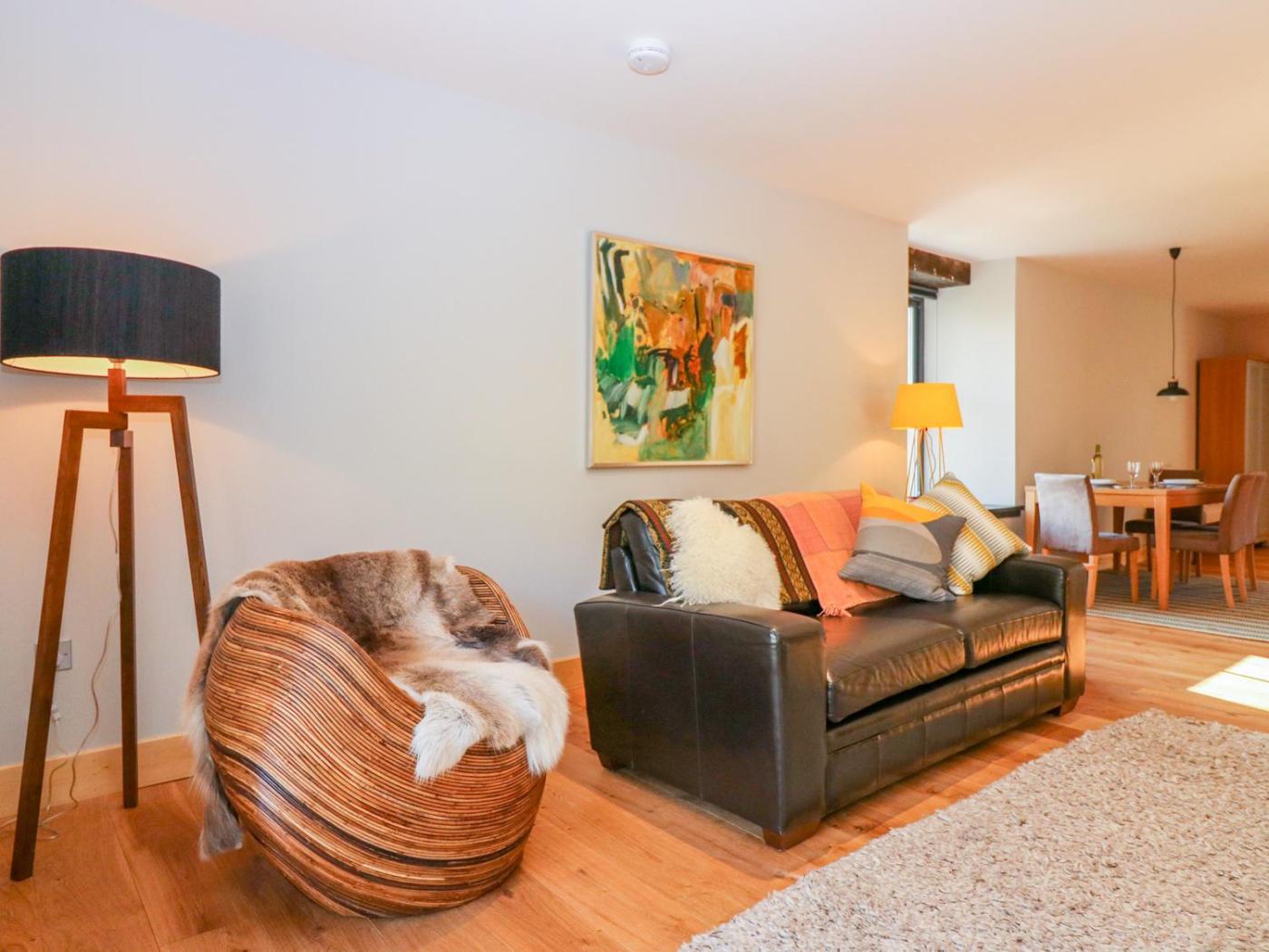 The holiday home features 1 bedroom, a TV, a fully equipped kitchen with a dishwasher and an oven, a washing machine, and 2 bathrooms with a walk-in shower. Providing free private parking, this 5-star holiday home also features free WiFi. There is also a seating area and a fireplace.