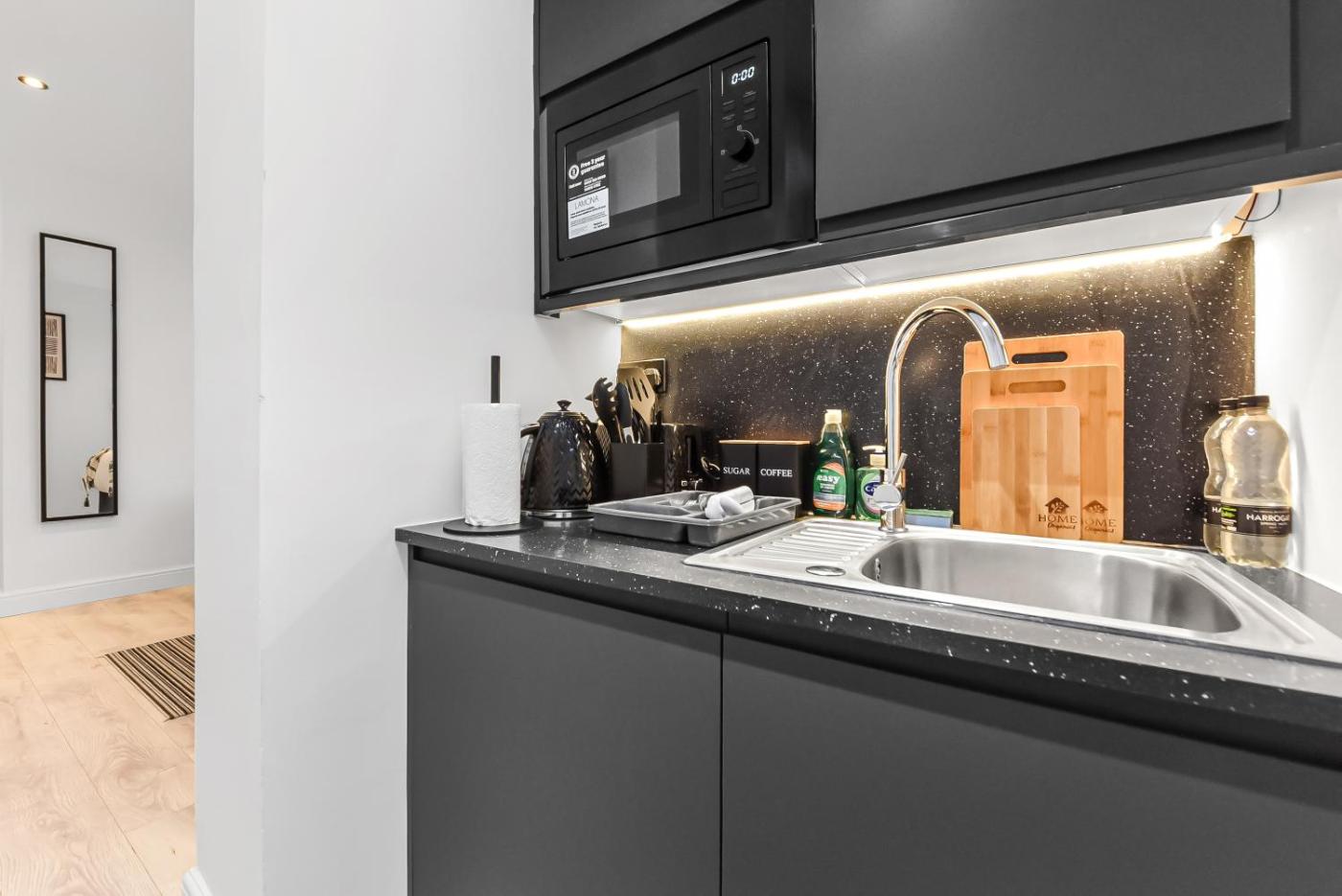 One-Bedroom Apartment. Featuring a private entrance, this apartment also comprises 1 bedroom, a seating area and 1 bathroom with a shower and a hairdryer. Meals can be prepared in the well-fitted kitchenette, which comes with kitchenware, a microwave and a toaster. The apartment provides soundproof walls, a minibar, a tea and coffee maker, a flat-screen TV with satellite channels, as well as city views. The unit offers 2 beds.