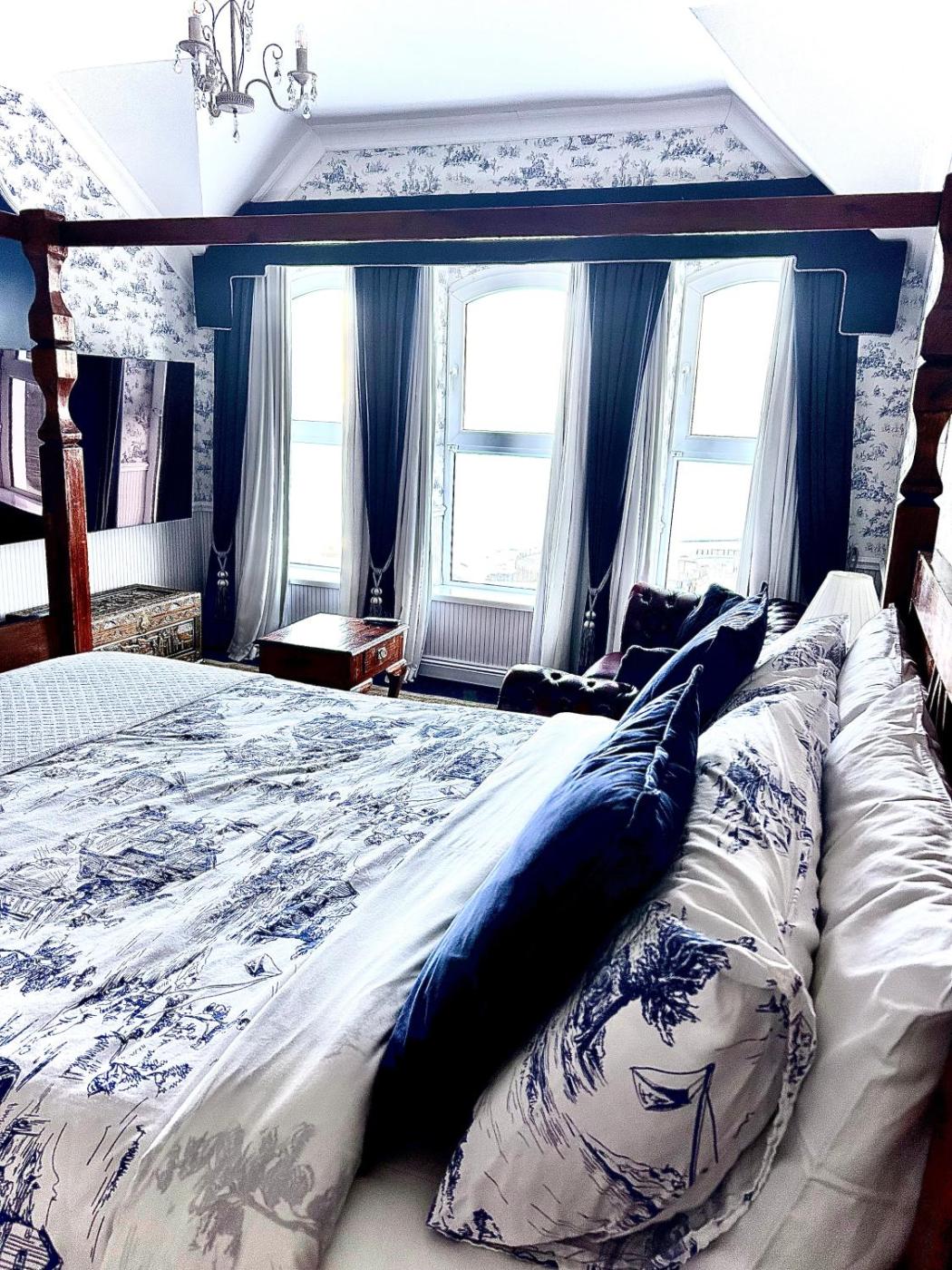 Four Poster Room with Sea View. With ocean views over the East Strand beach, Royal Portrush golf course and along the North Antrim Coast to The Giants Causeway. The four-poster bed, and free Wi-Fi are also included. ;