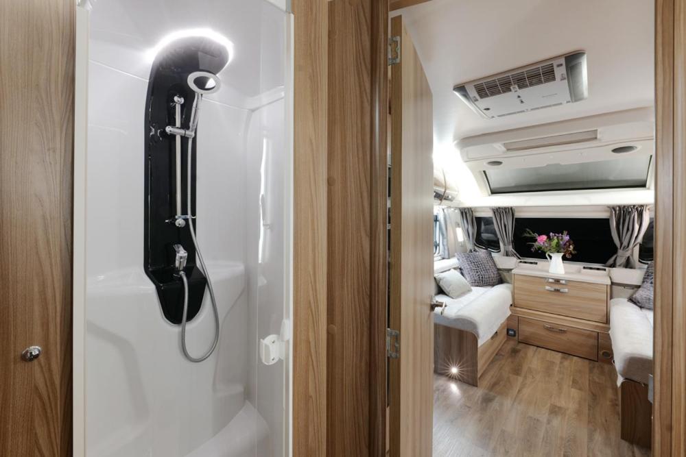Premium Caravan. Boasting a private entrance, this mobile home comes with 1 living room, 1 separate bedroom and 1 bathroom with a shower and a hairdryer. Guests can make meals in the kitchenette that features a stovetop, a refrigerator, kitchenware and an oven. The mobile home features a seating area, a dining area, a wardrobe, a flat-screen TV with streaming services, as well as garden views. The unit has 2 beds. ;